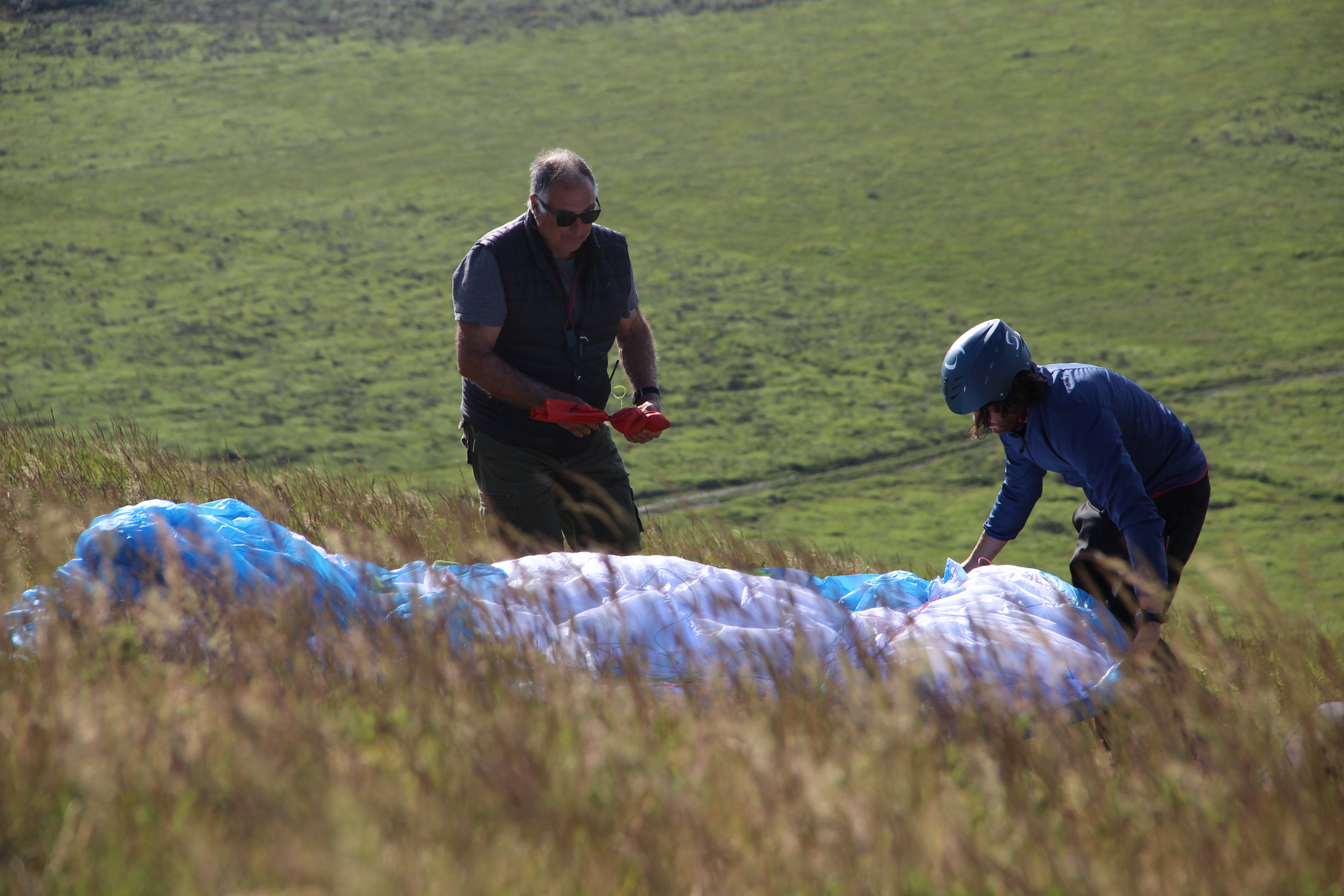 Au bout d'un moment, on veut aller faire le clown dans les dunes. Il faut que la voile de gonflage fasse le travail. Une vieille voile (une C ?) qui vole encore se trouve à pas trop cher.Il faut la prendre pas trop grande, car on fait le clown quand ça ne vole pas vraiment, donc quand le vent est soutenu.